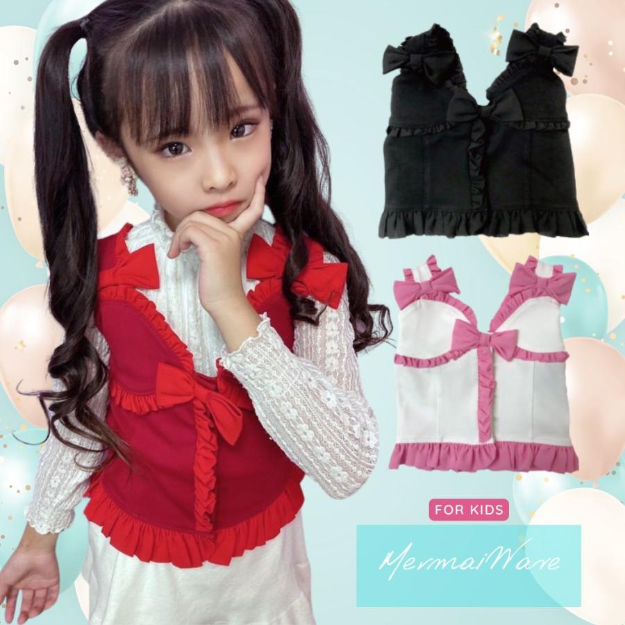 子供服 トップス タンクトップ キャミ ビスチェ 赤 黒 白ダンス 衣装