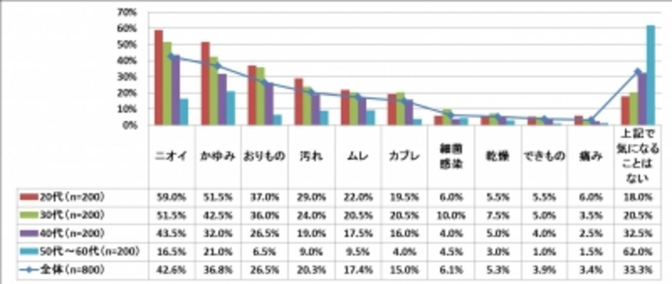 デリケートゾーンの悩み 1位 ニオイ 2位 かゆみ かゆみが気になる