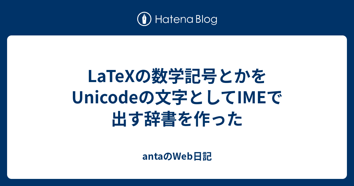 Latexの数学記号とかをunicodeの文字としてimeで出す辞書を作った
