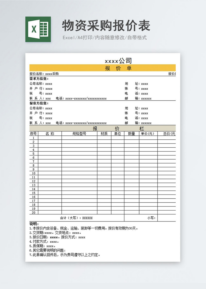 物资采购报价表excel模板图片 正版模板下载400154619 摄图网