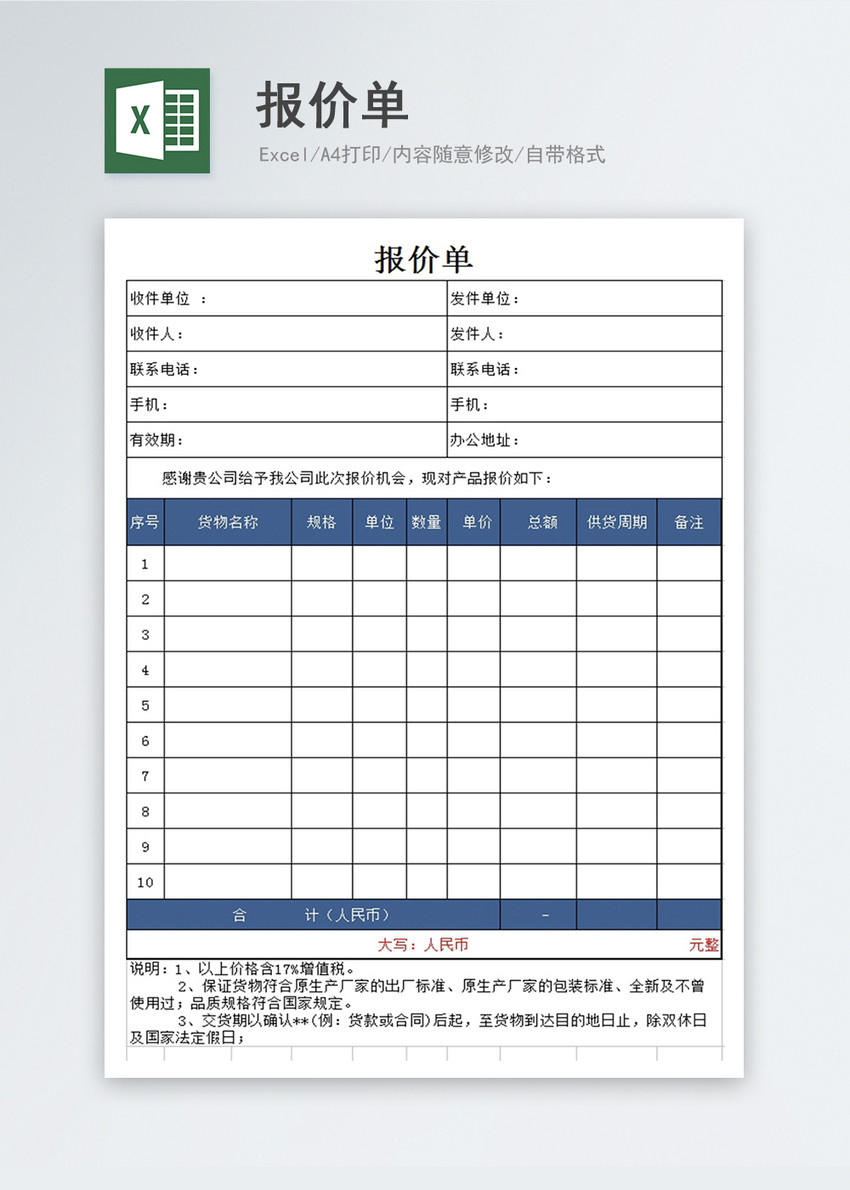 Excel 报价表