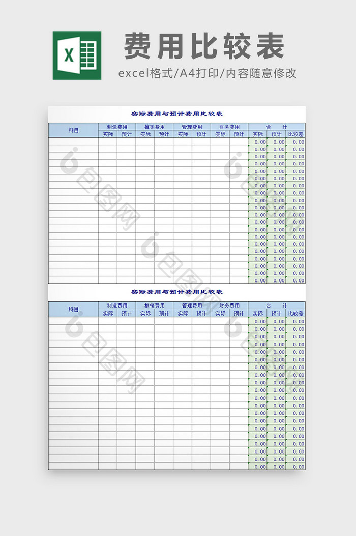 费用比较表 Excel模板下载 包图网