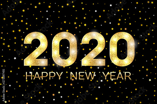 2020 Happy New Year Golden Numbers And Stars On Dark Background