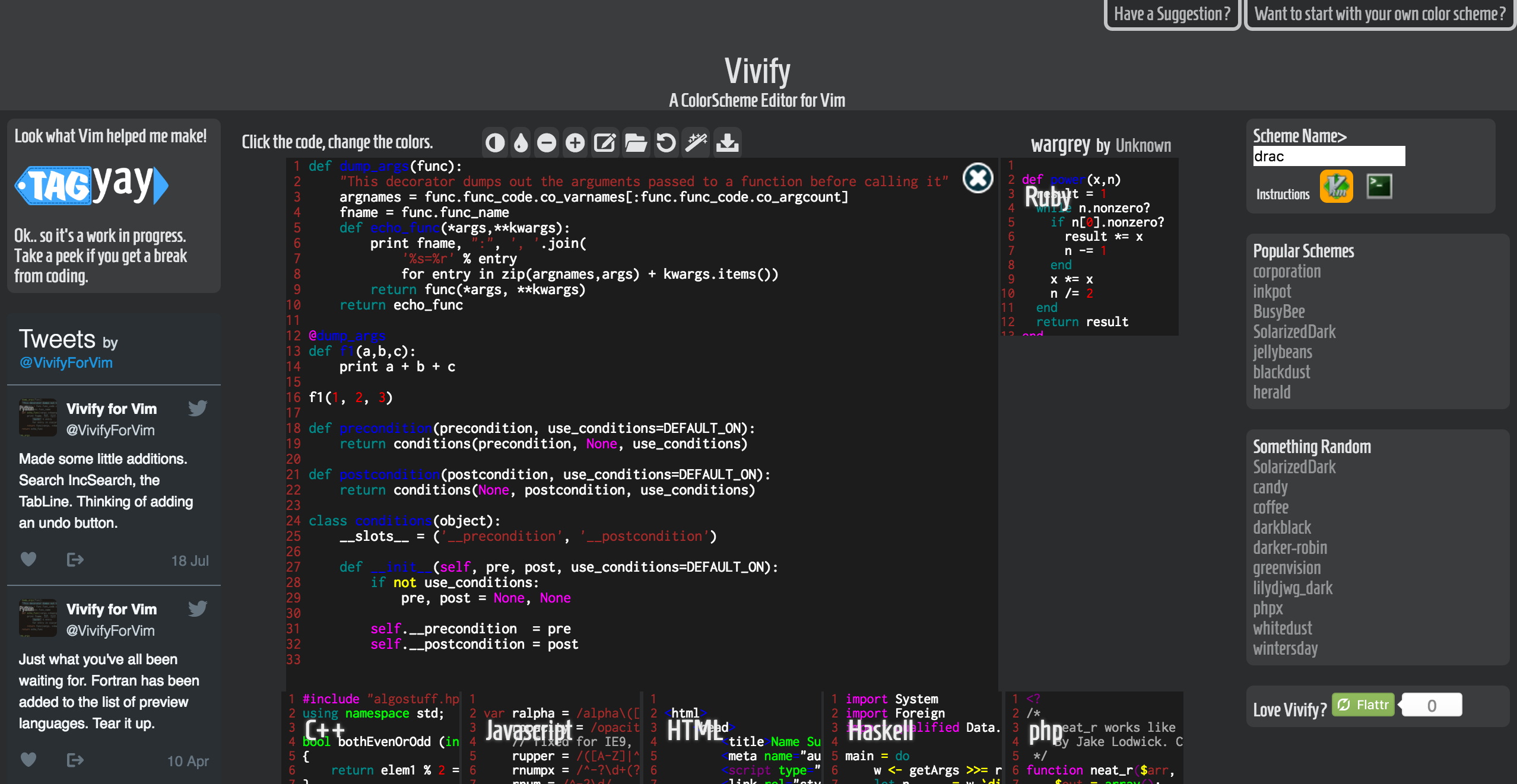 Vim の割と新しいおすすめ Colorscheme たちを紹介する Qiita